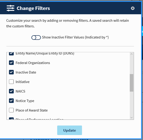 Once you have a search that gives results that suit the company, you can “Save Search” in the upper right-hand corner. If you want to better target the search, choose “Change Filters” in the left sidebar. That brings up a long list of menu options that you can select to further customize the saved search for better matching opportunities.